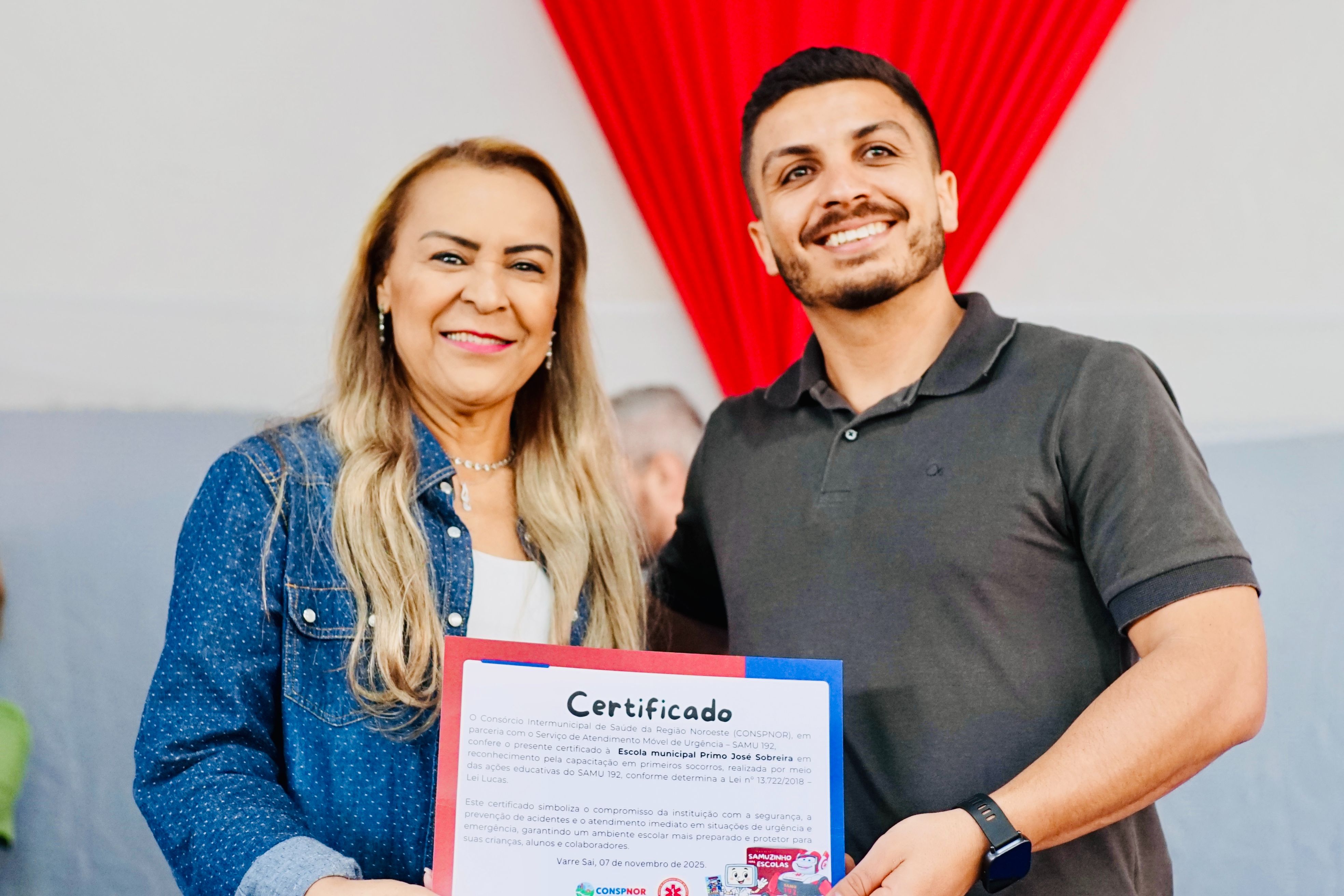 O Secretário Executivo do CONSPNOR, Netto Braga, destacou que levar o Samuzinho para Varre-Sai reforça o compromisso do consórcio com a formação de uma comunidade mais preparada e consciente: “Cada visita do Samuzinho é uma oportunidade de transformar conhecimento em cuidado. Ensinar primeiros socorros nas escolas é investir em cidadania e em prevenção.”
